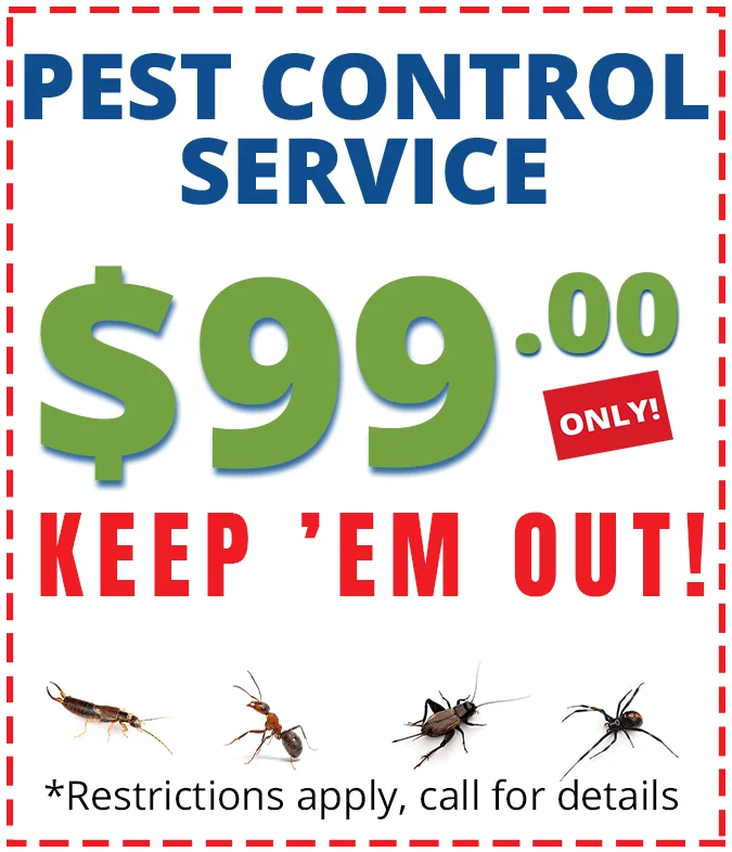 Common service includes ants, roaches, spiders, rodents, stinging insects, termites, bed bugs, mosquitoes, ticks, and seasonal invaders.